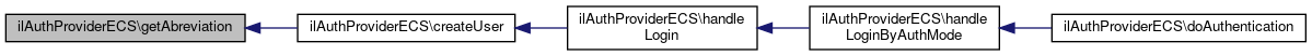Here is the call graph for this function:| ilAuthProviderECS::getAbreviation | ( | ) |