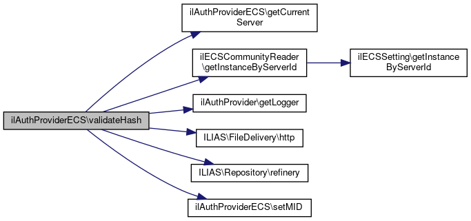 Here is the caller graph for this function:| ilAuthProviderECS::validateHash | ( | ) |