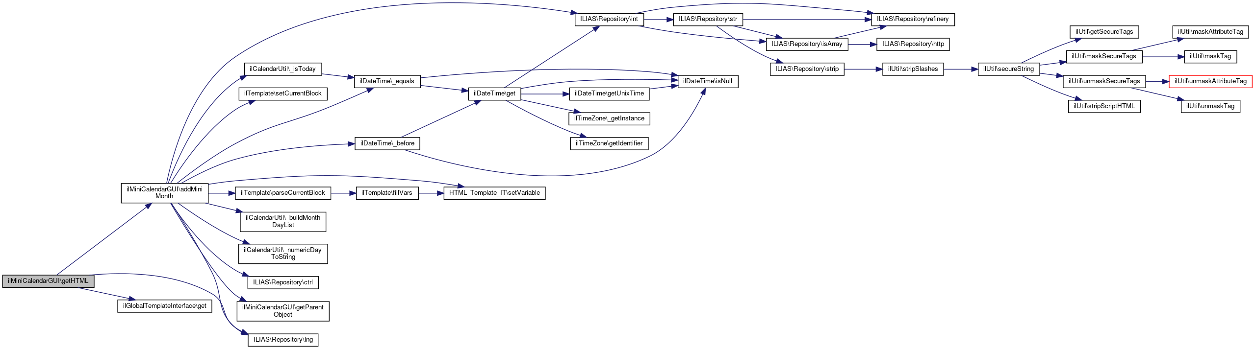 Here is the caller graph for this function:| ilMiniCalendarGUI::getHTML | ( | ) |