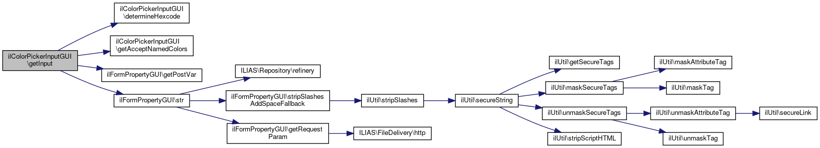 Here is the caller graph for this function:| ilColorPickerInputGUI::getInput | ( | ) |