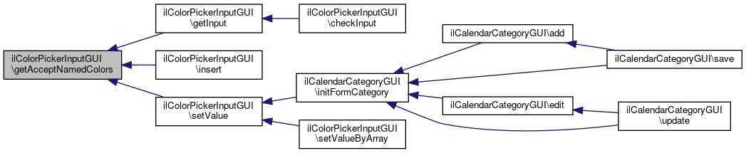Here is the call graph for this function:| ilColorPickerInputGUI::setAcceptNamedColors | ( | bool | $a_acceptnamedcolors | ) |