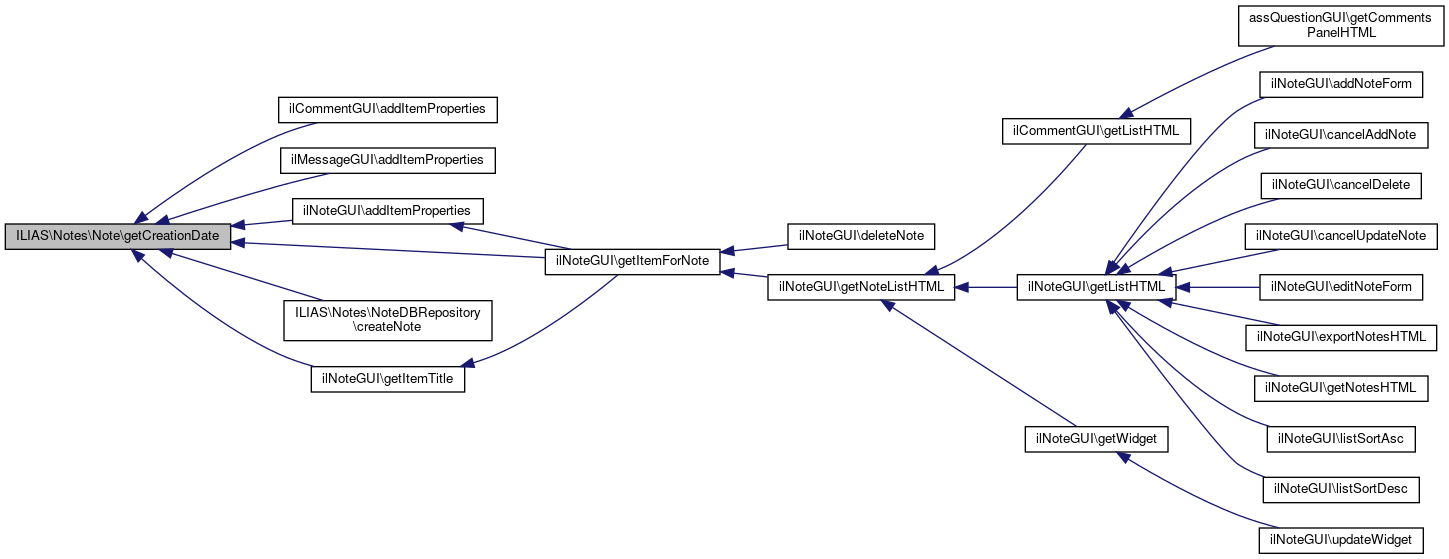 Here is the caller graph for this function:| ILIAS\Notes\Note::getCreationDate | ( | ) |