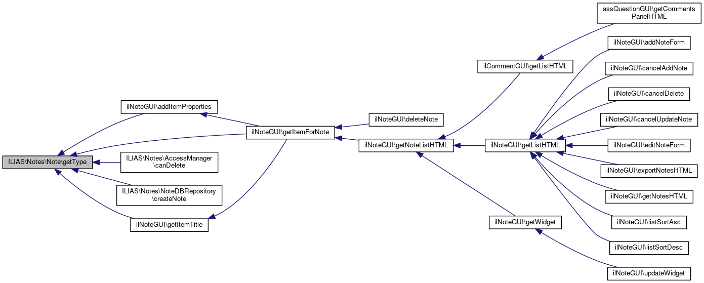 Here is the caller graph for this function:| ILIAS\Notes\Note::getType | ( | ) |