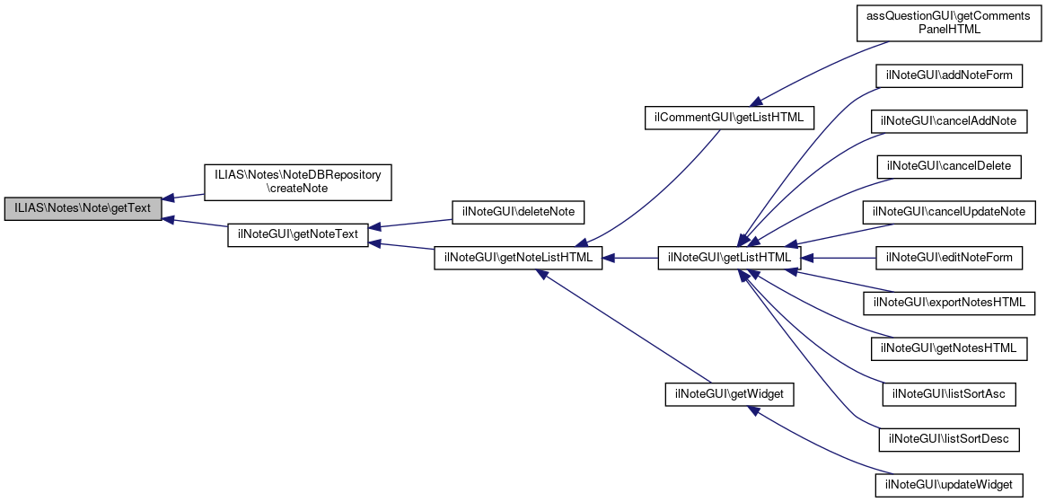 Here is the caller graph for this function:| ILIAS\Notes\Note::getText | ( | ) |