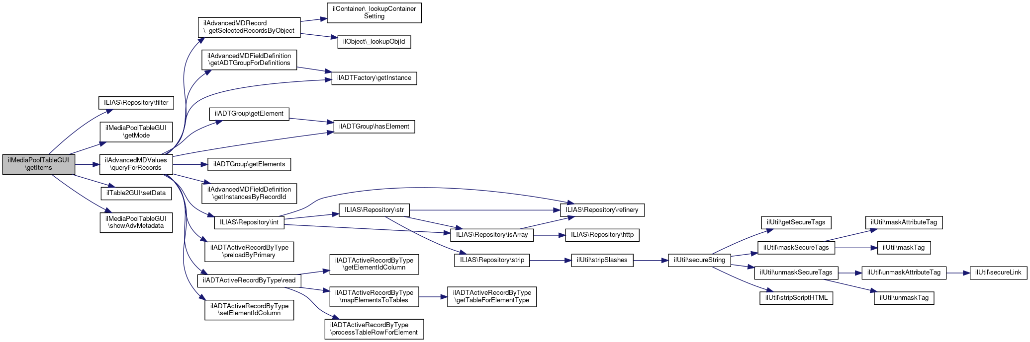 Here is the caller graph for this function:| ilMediaPoolTableGUI::getItems | ( | ) |
