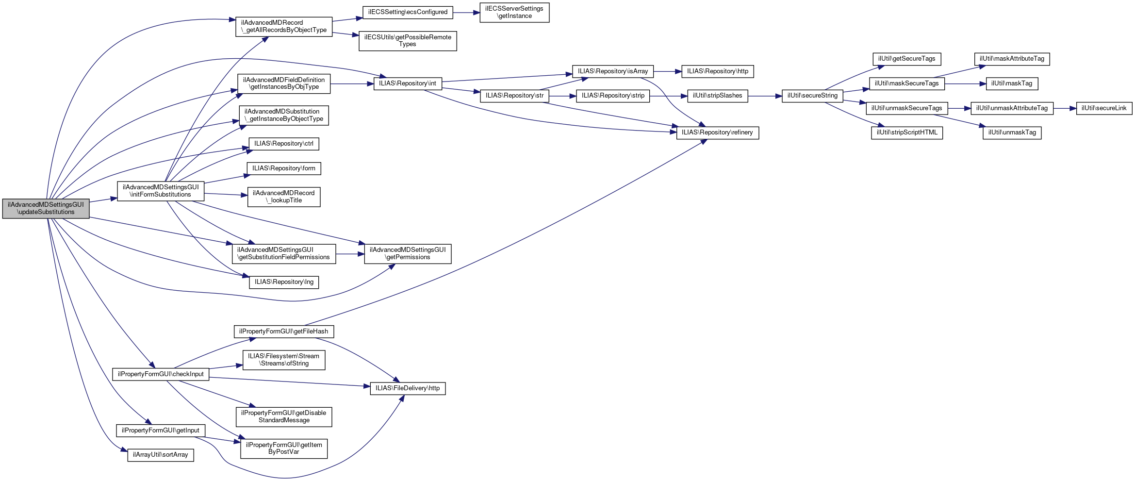 Here is the call graph for this function:| ilAdvancedMDSettingsGUI::updateSubstitutions | ( | ) |