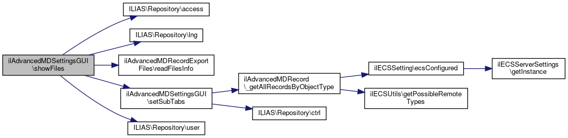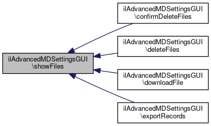 References ILIAS\Repository\ctrl(), getFileIdsFromPost(), ILIAS\Repository\lng(), ilAdvancedMDRecordExportFiles\readFilesInfo(), showFiles(), and ILIAS\Repository\user().