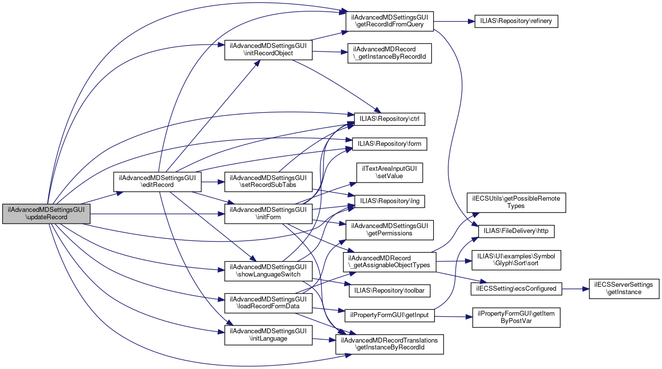 Here is the call graph for this function:| ilAdvancedMDSettingsGUI::updateRecord | ( | ) |