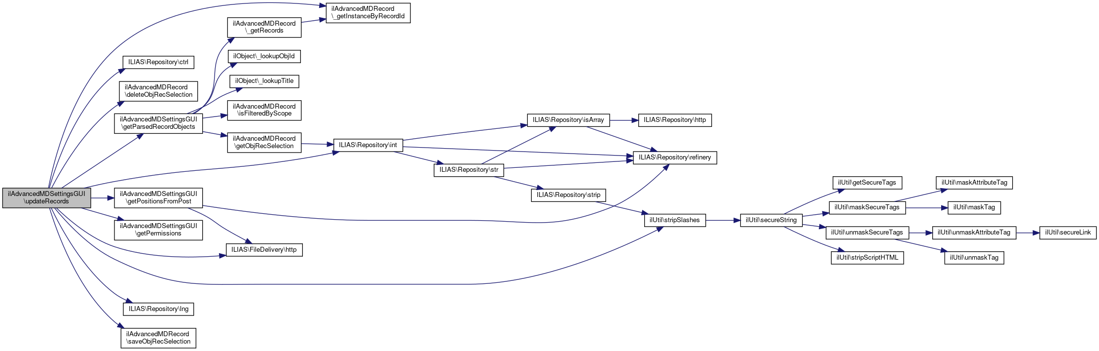 Here is the call graph for this function:| ilAdvancedMDSettingsGUI::updateRecords | ( | ) |