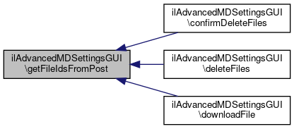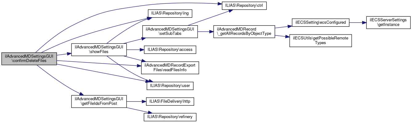 Here is the call graph for this function:| ilAdvancedMDSettingsGUI::confirmDeleteFiles | ( | ) |