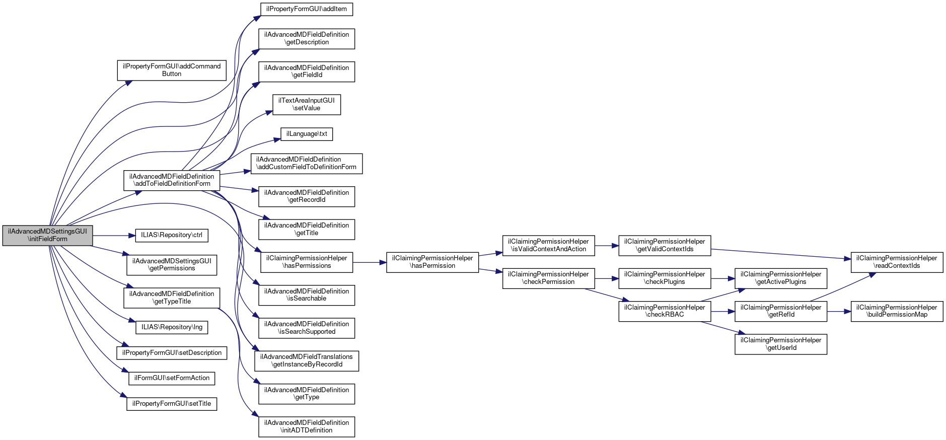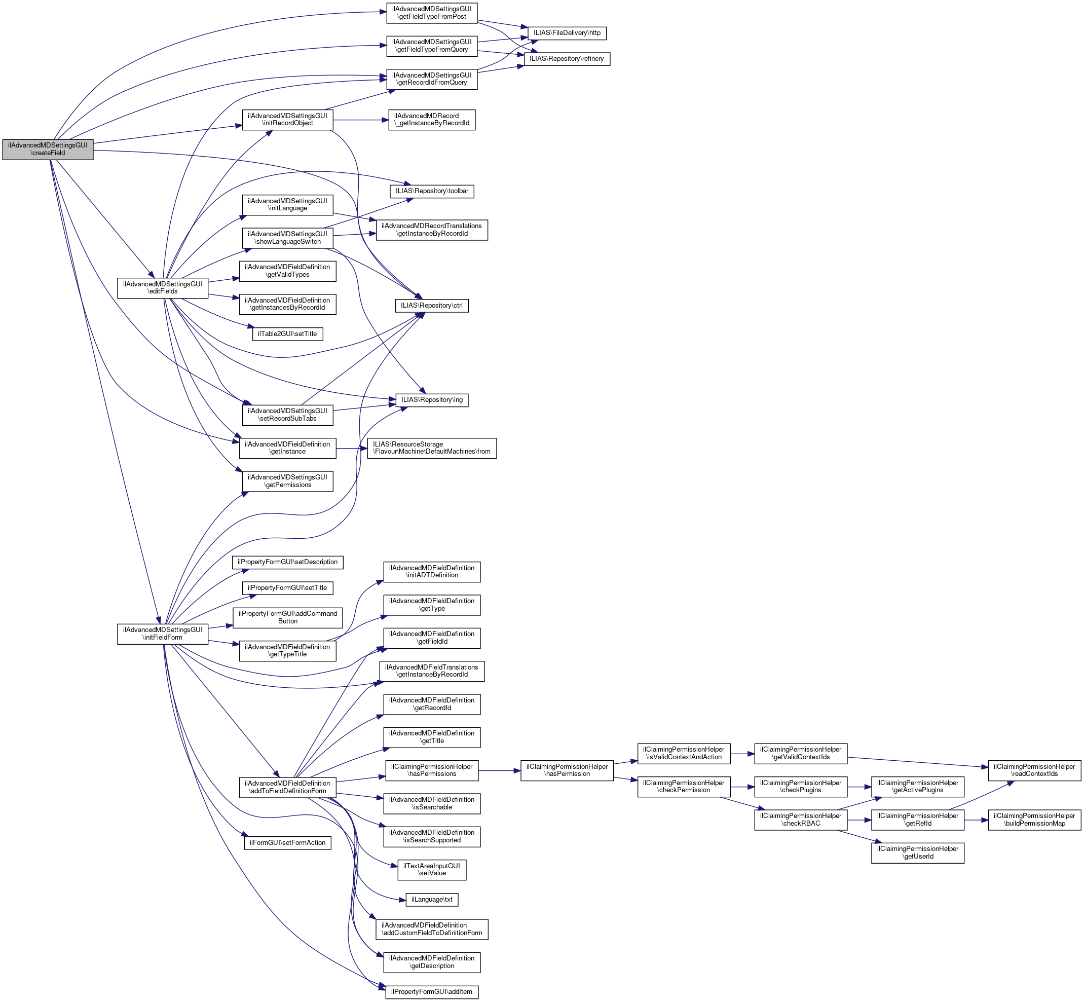 Here is the call graph for this function:| ilAdvancedMDSettingsGUI::createField | ( | ilPropertyFormGUI | $a_form = null | ) |
