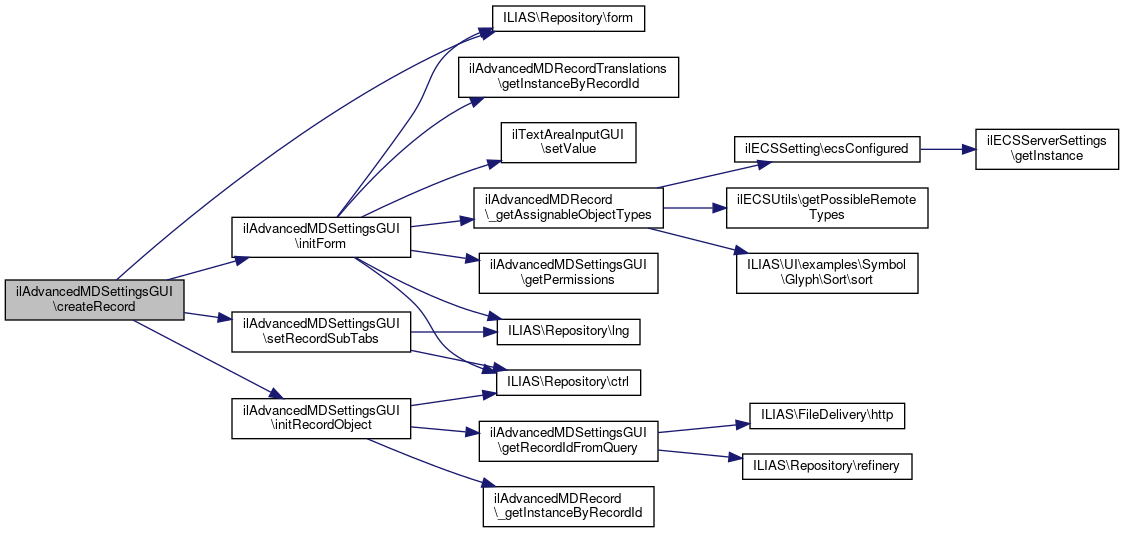 Here is the call graph for this function:| ilAdvancedMDSettingsGUI::saveRecord | ( | ) |