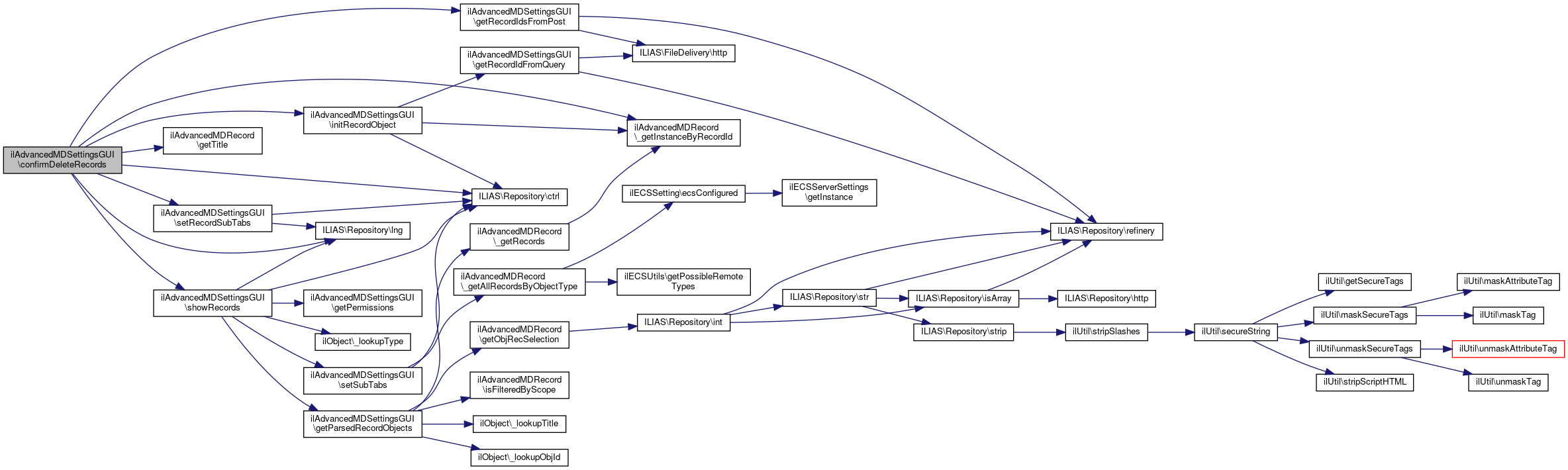 Here is the call graph for this function:| ilAdvancedMDSettingsGUI::confirmDeleteRecords | ( | ) |
