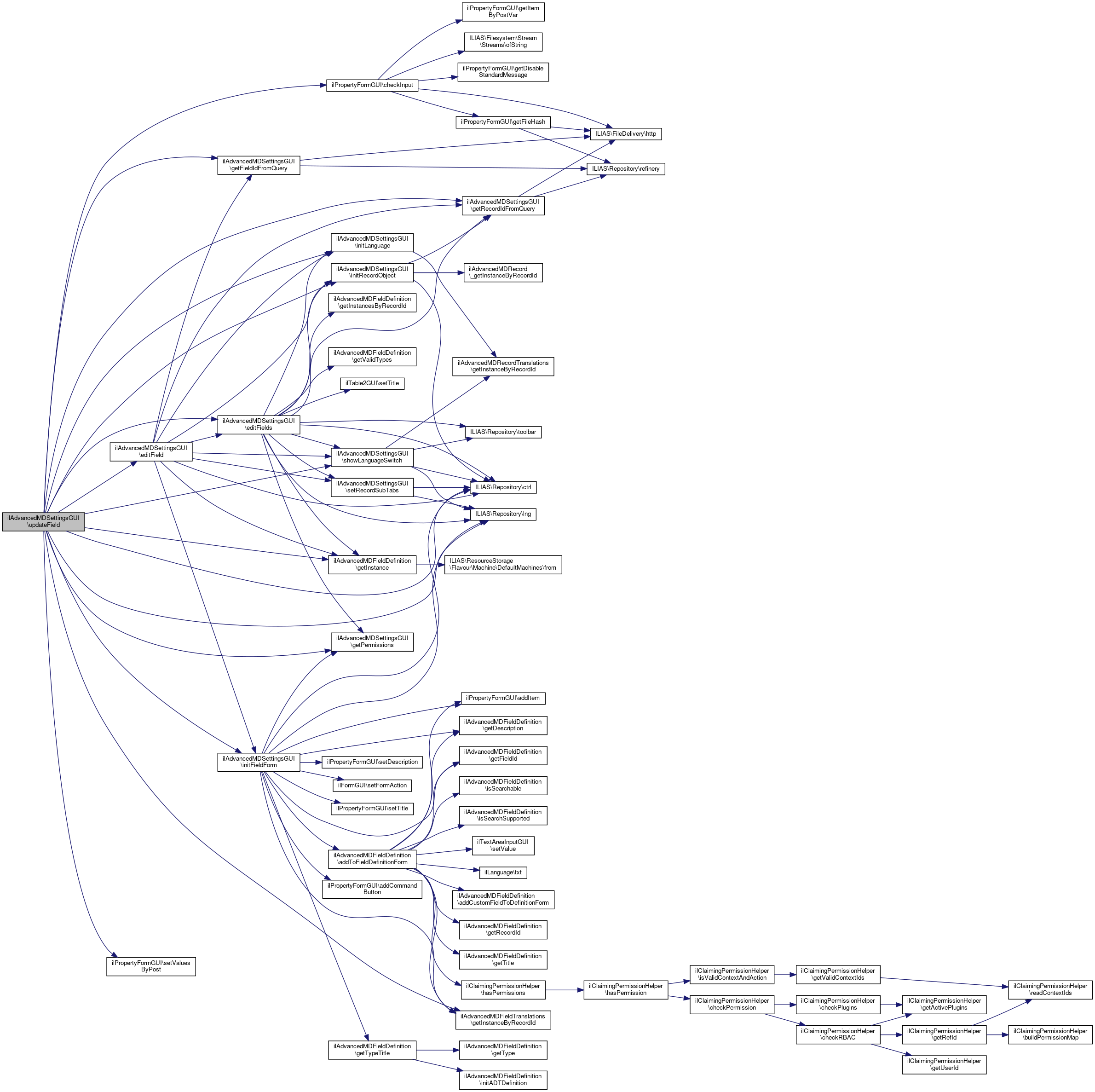 Here is the call graph for this function:| ilAdvancedMDSettingsGUI::updateField | ( | ) |