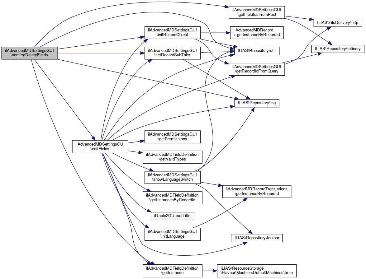 Here is the call graph for this function:| ilAdvancedMDSettingsGUI::confirmDeleteFields | ( | ) |