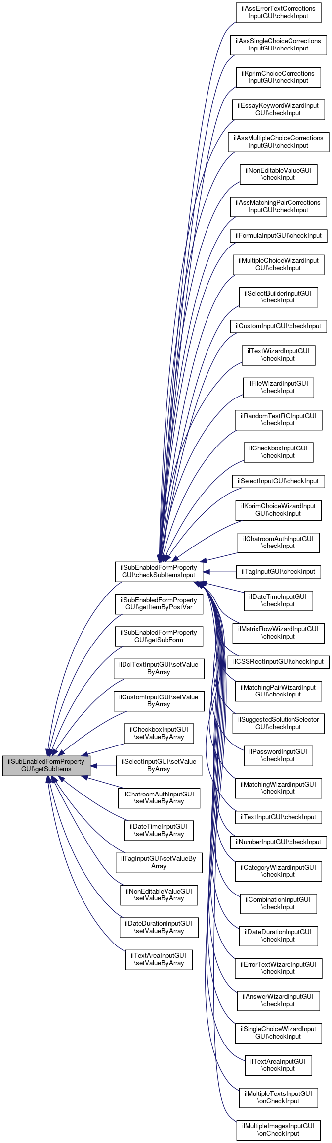 Here is the caller graph for this function:| ilSubEnabledFormPropertyGUI::getSubItems | ( | ) |