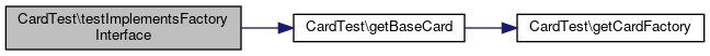 Here is the call graph for this function:| CardTest::testImplementsFactoryInterface | ( | ) |