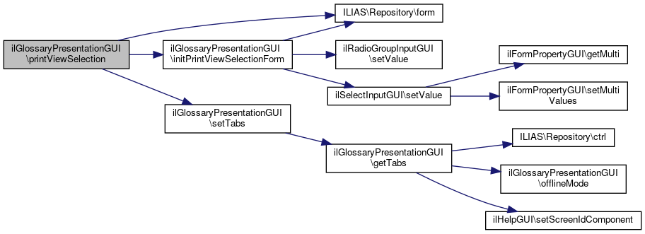 Here is the call graph for this function:| ilGlossaryPresentationGUI::printViewSelection | ( | ) |