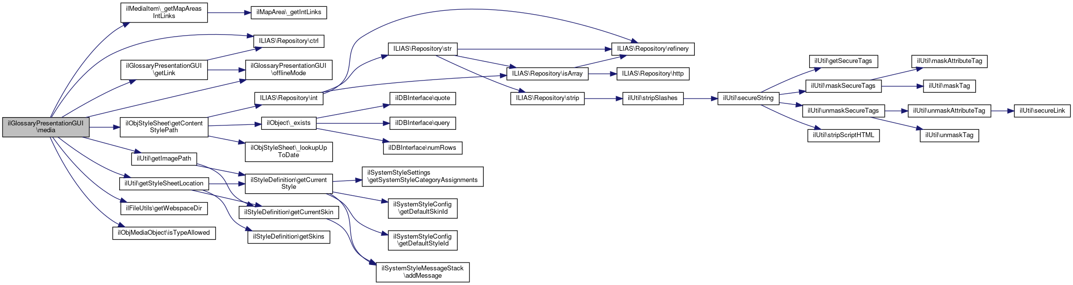 Here is the call graph for this function:| ilGlossaryPresentationGUI::media | ( | string | $a_mode = "media" | ) |