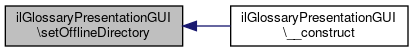 Here is the caller graph for this function:| ilGlossaryPresentationGUI::setOfflineDirectory | ( | string | $a_dir | ) |