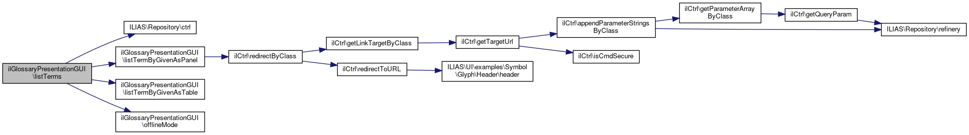 References $access, $ctrl, $lng, $nav_history, $tabs_gui, $toolbar, ILIAS\Repository\ctrl(), listTermByGivenAsPanel(), listTermByGivenAsTable(), and offlineMode().