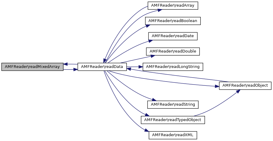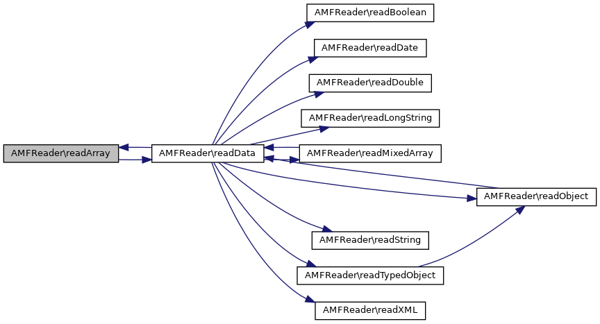 References readArray(), readBoolean(), readDate(), readDouble(), readLongString(), readMixedArray(), readObject(), readString(), readTypedObject(), and readXML().