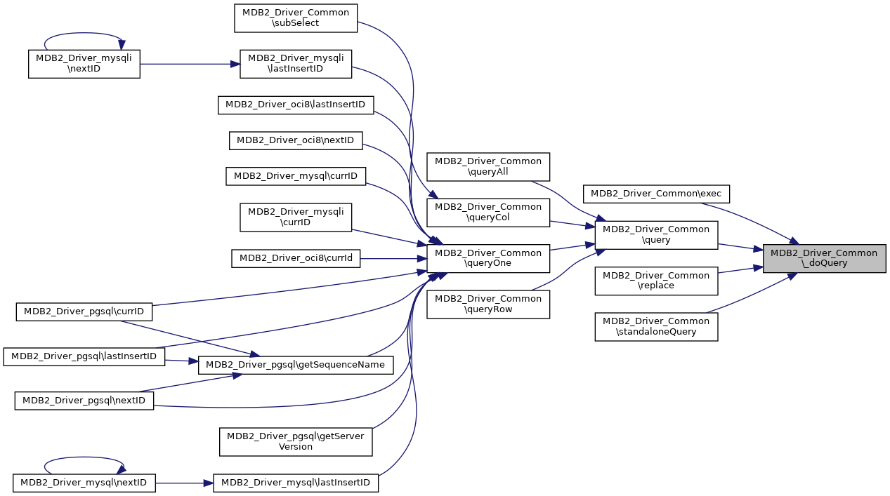 Referenced by MDB2_Driver_mysql\_affectedRows(), MDB2_Driver_mysqli\_affectedRows(), MDB2_Driver_oci8\_affectedRows(), MDB2_Driver_pgsql\_affectedRows(), MDB2_Driver_pgsql\_doConnect(), MDB2_Driver_oci8\_doConnect(), MDB2_Driver_mysql\_doQuery(), MDB2_Driver_mysqli\_doQuery(), MDB2_Driver_oci8\_doQuery(), MDB2_Driver_pgsql\_doQuery(), MDB2_Driver_oci8\commit(), MDB2_Driver_mysql\connect(), MDB2_Driver_mysqli\connect(), MDB2_Driver_oci8\connect(), MDB2_Driver_pgsql\connect(), MDB2_Driver_mysql\escape(), MDB2_Driver_mysqli\escape(), MDB2_Driver_pgsql\escape(), exec(), getConnection(), MDB2_Driver_mysql\getServerVersion(), MDB2_Driver_mysqli\getServerVersion(), MDB2_Driver_oci8\getServerVersion(), MDB2_Driver_mysql\prepare(), MDB2_Driver_mysqli\prepare(), MDB2_Driver_oci8\prepare(), MDB2_Driver_pgsql\prepare(), query(), replace(), MDB2_Driver_mysql\replace(), MDB2_Driver_mysqli\replace(), MDB2_Driver_oci8\rollback(), MDB2_Driver_mysql\setCharset(), MDB2_Driver_mysqli\setCharset(), MDB2_Driver_pgsql\setCharset(), MDB2_Driver_oci8\standaloneExec(), standaloneQuery(), MDB2_Driver_oci8\standaloneQuery(), and MDB2_Driver_pgsql\standaloneQuery().