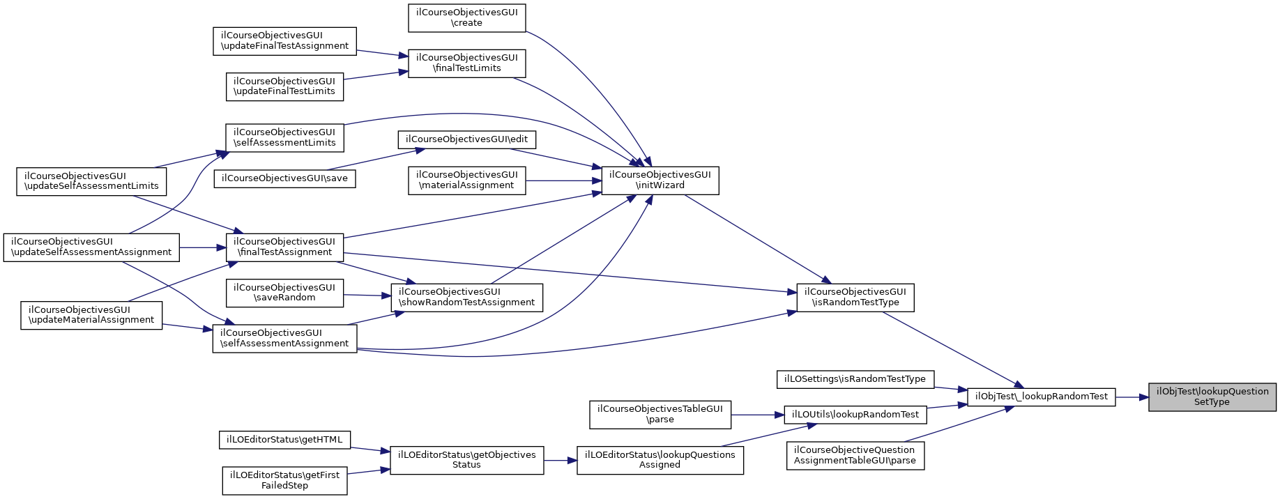 Referenced by _getQuestionCountAndPointsForPassOfParticipant(), _lookupRandomTest(), ilObjTestSettingsGeneralGUI\addGeneralProperties(), ilTestSettingsTemplateConfig\addGeneralPropertySettings(), ilObjTestGUI\applyDefaultsObject(), ilLOTestAssignmentTableGUI\fillRow(), ilTestSessionFactory\getNewTestSessionObject(), ilTestPlayerFactory\getPlayerGUI(), ilTestQuestionSetConfigFactory\getQuestionSetConfigByType(), getQuestionSetTypeTranslation(), ilTestSequenceFactory\getSequenceByPass(), ilObjTestGUI\getTabs(), ilLOEditorGUI\initTestForm(), isRandomTest(), and ilObjTestGUI\questionsTabGatewayObject().