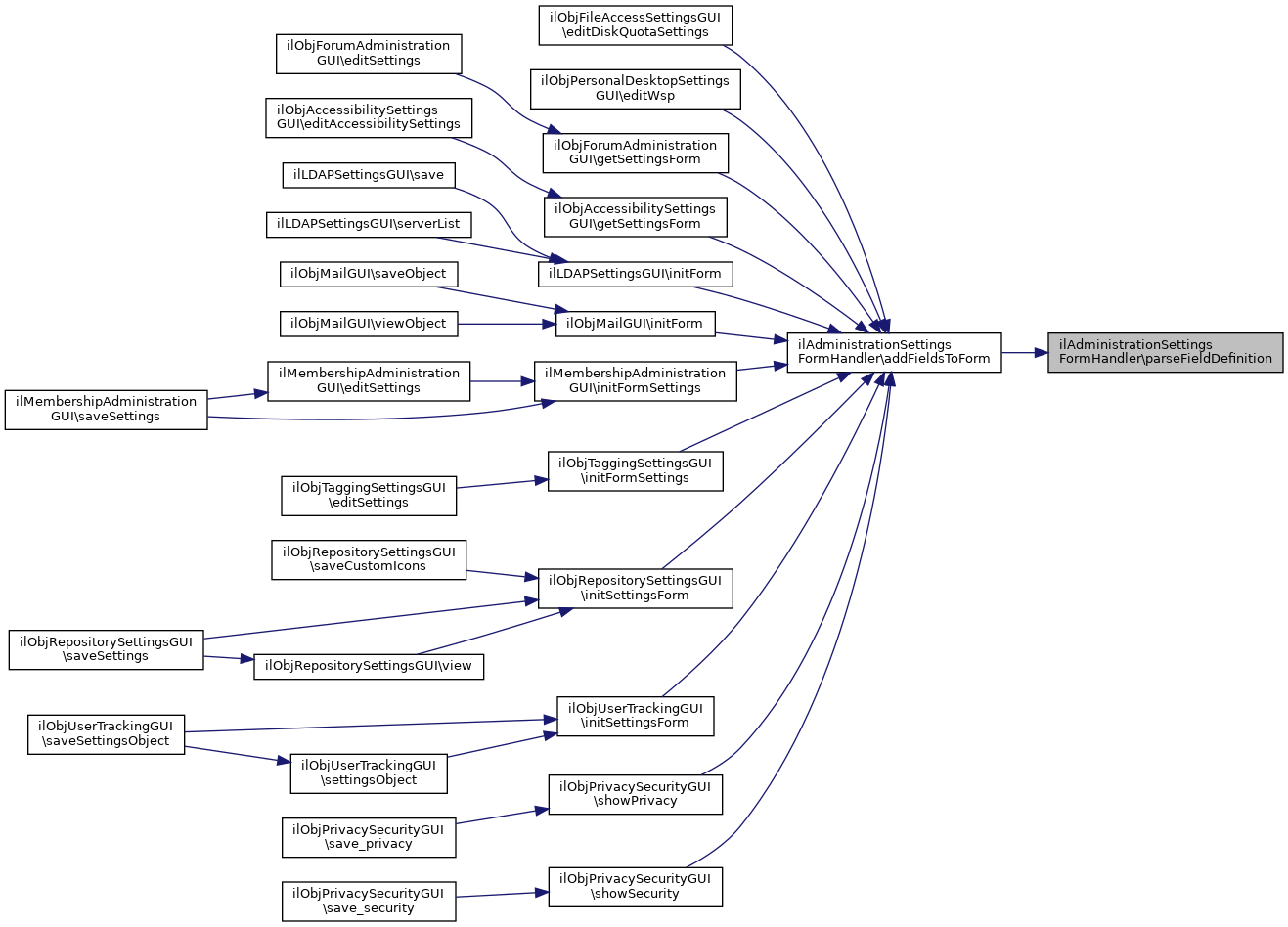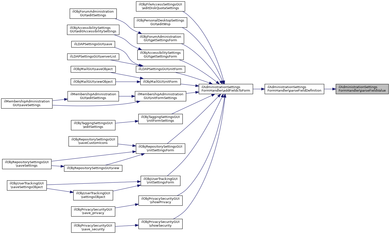 Referenced by ilObjLearningResourcesSettingsGUI\addToExternalSettingsForm(), ilObjPortfolioAdministrationGUI\addToExternalSettingsForm(), ilObjSystemFolderGUI\addToExternalSettingsForm(), ilObjWikiSettingsGUI\addToExternalSettingsForm(), ilObjRoleFolderGUI\addToExternalSettingsForm(), ilObjAuthSettingsGUI\addToExternalSettingsForm(), ilObjCalendarSettingsGUI\addToExternalSettingsForm(), ilMembershipAdministrationGUI\addToExternalSettingsForm(), ilObjPersonalDesktopSettingsGUI\addToExternalSettingsForm(), ilObjPrivacySecurityGUI\addToExternalSettingsForm(), ilObjRepositorySettingsGUI\addToExternalSettingsForm(), ilObjUserFolderGUI\addToExternalSettingsForm(), ilDAVCronDiskQuota\addToExternalSettingsForm(), and parseFieldValue().