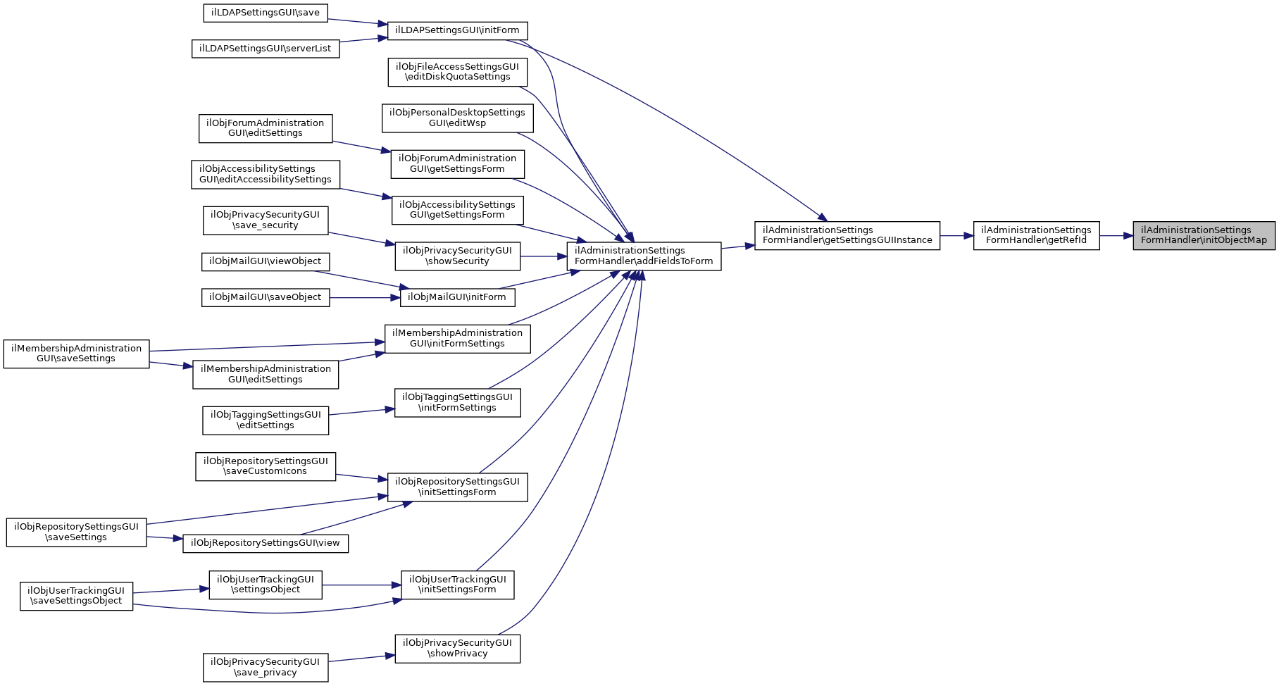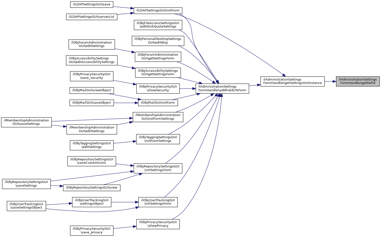 Referenced by addFieldsToForm(), ilObjCalendarSettingsGUI\addToExternalSettingsForm(), ilObjPrivacySecurityGUI\addToExternalSettingsForm(), ilMembershipCronNotifications\addToExternalSettingsForm(), and ilObjCourseAdministrationGUI\getAdministrationFormId().