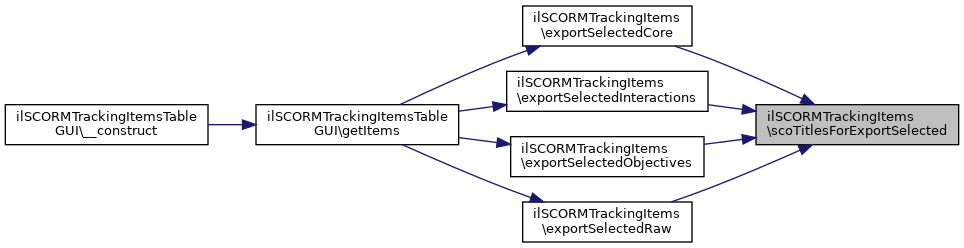 ilSCORMTrackingItems::scoTitlesForExportSelected | ( | ) |