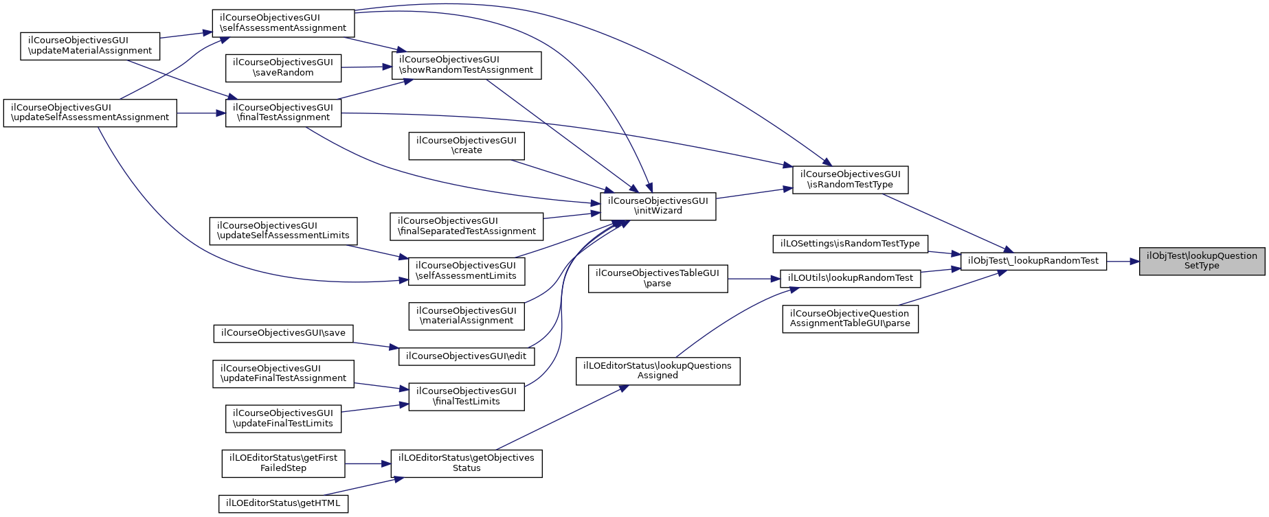 Referenced by _getQuestionCountAndPointsForPassOfParticipant(), _lookupRandomTest(), ilObjTestSettingsGeneralGUI\addGeneralProperties(), ilTestSettingsTemplateConfig\addGeneralPropertySettings(), ilObjTestGUI\applyDefaultsObject(), ilLOTestAssignmentTableGUI\fillRow(), ilTestExportFactory\getExporter(), ilTestSessionFactory\getNewTestSessionObject(), ilTestPlayerFactory\getPlayerGUI(), ilTestQuestionSetConfigFactory\getQuestionSetConfigByType(), getQuestionSetTypeTranslation(), ilTestSequenceFactory\getSequenceByActiveIdAndPass(), ilObjTestGUI\getTabs(), ilQTIParser\handlerVerifyEndTag(), ilLOTestAssignmentForm\initForm(), isRandomTest(), and ilObjTestGUI\questionsTabGatewayObject().