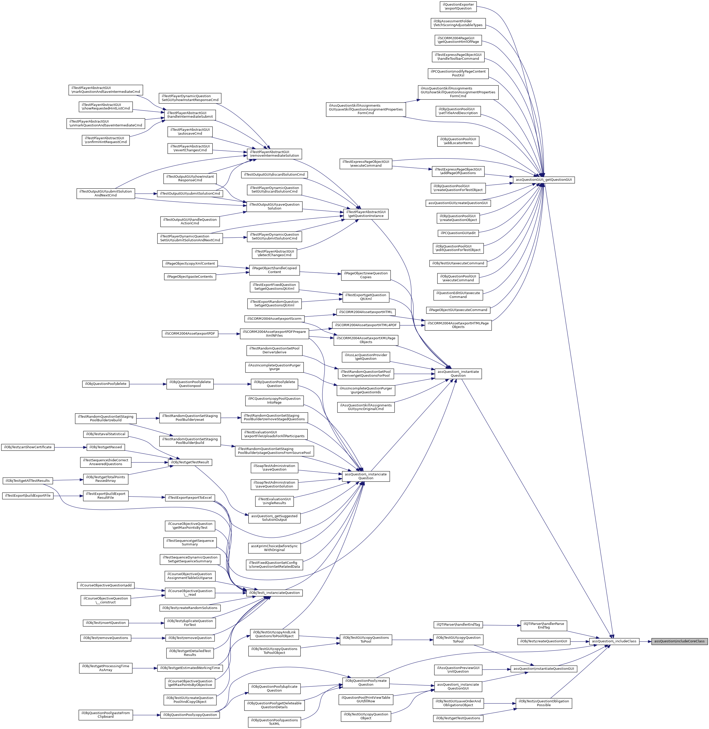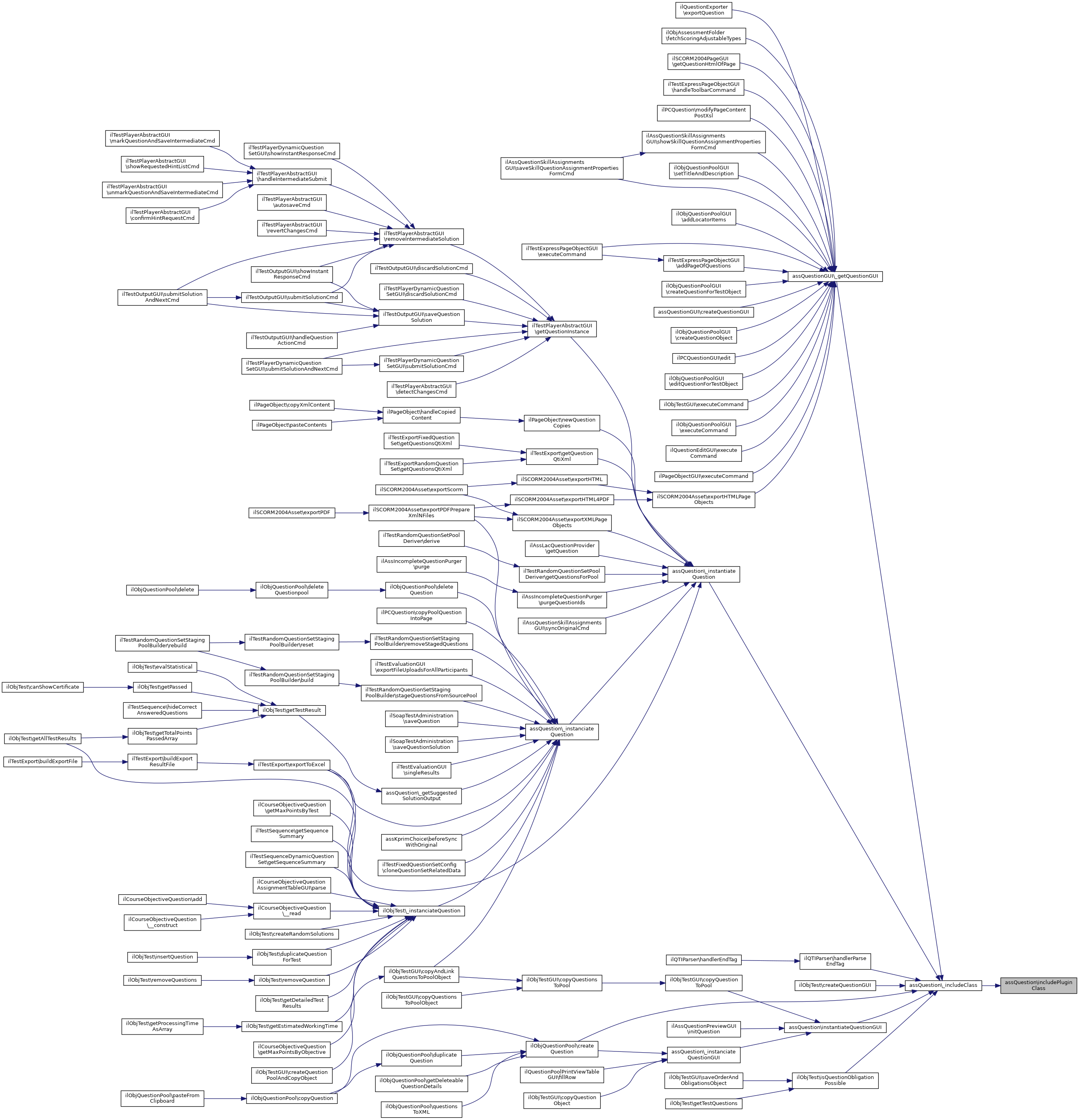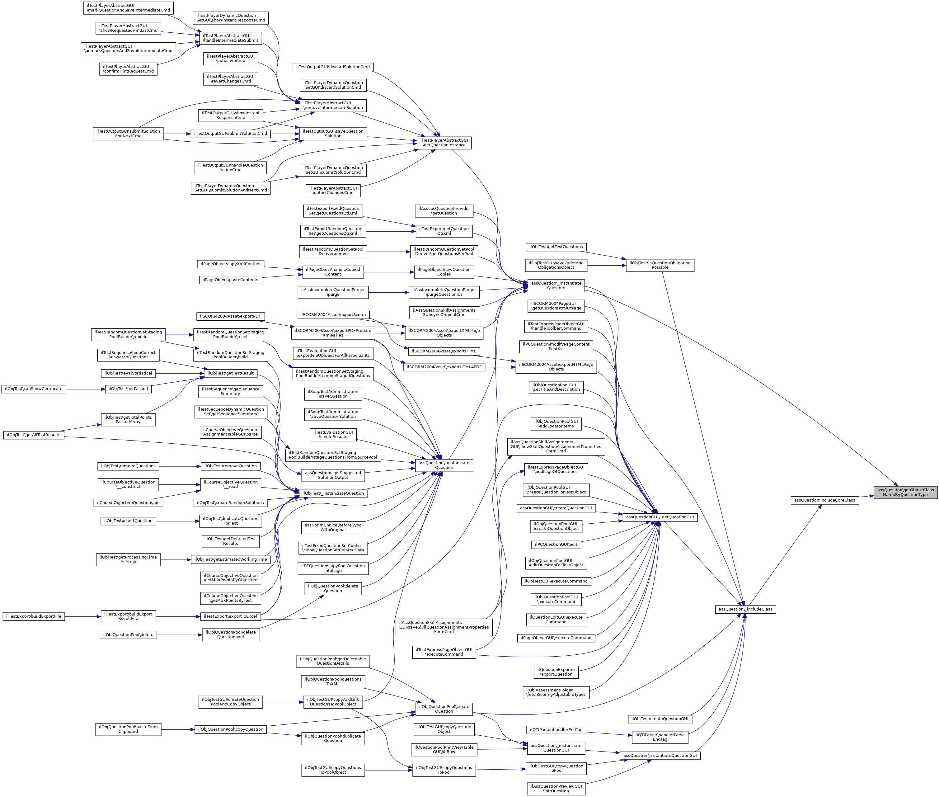 Referenced by assClozeTest\__construct(), assFileUpload\__construct(), assFlashQuestion\__construct(), assFormulaQuestion\__construct(), assLongMenu\__construct(), assNumeric\__construct(), assOrderingHorizontal\__construct(), __construct(), assTextQuestion\__construct(), assTextSubset\__construct(), assImagemapQuestion\__construct(), assJavaApplet\__construct(), assMatchingQuestion\__construct(), assOrderingQuestion\__construct(), assMultipleChoice\__construct(), assSingleChoice\__construct(), assErrorText\__construct(), assKprimChoice\__construct(), _getSuggestedSolutionOutput(), _instantiateQuestion(), assKprimChoice\beforeSyncWithOriginal(), getQuestion(), and setQuestion().