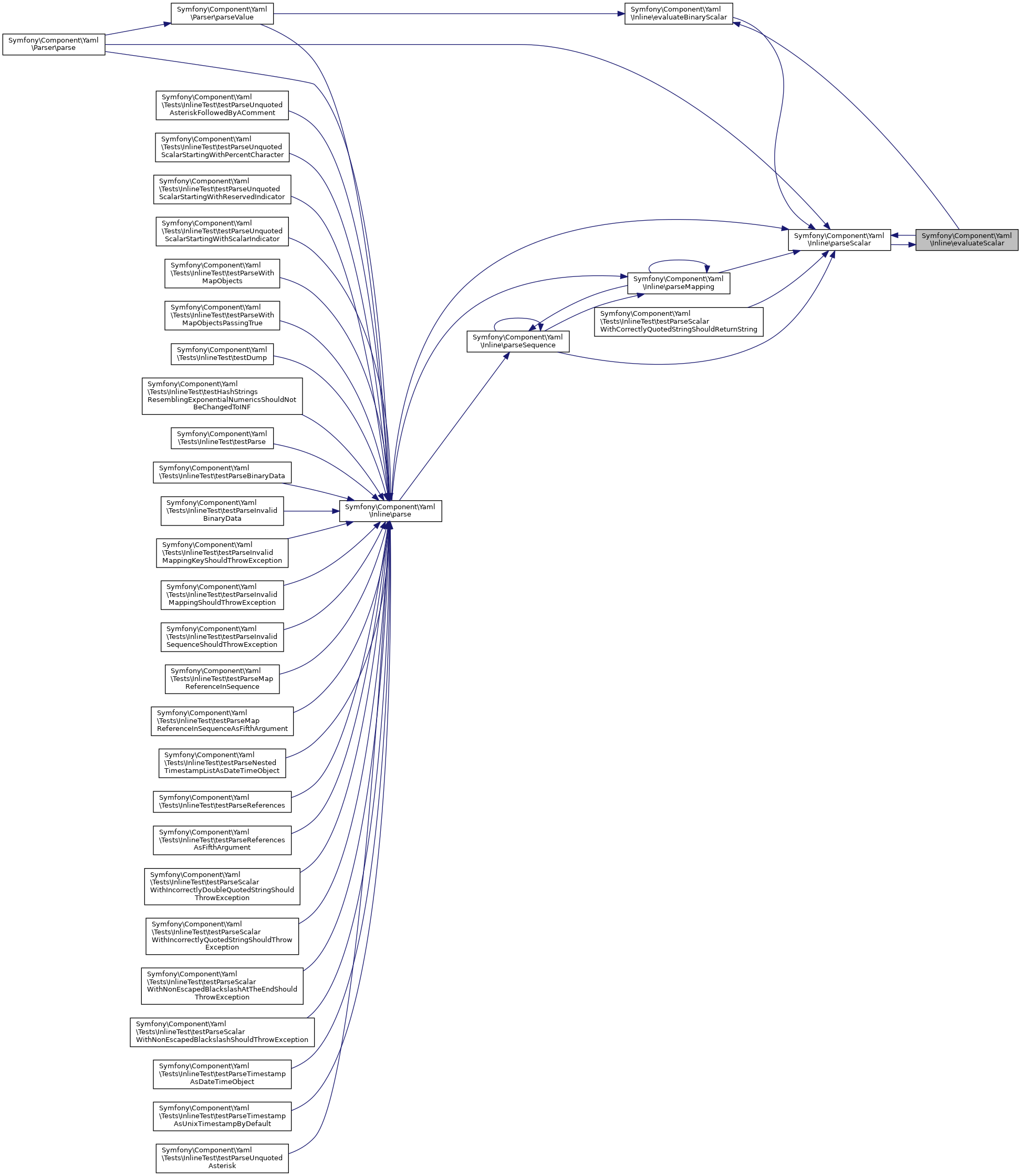 Referenced by Symfony\Component\Yaml\Inline\evaluateBinaryScalar(), Symfony\Component\Yaml\Inline\evaluateScalar(), Symfony\Component\Yaml\Parser\parse(), Symfony\Component\Yaml\Inline\parse(), Symfony\Component\Yaml\Inline\parseMapping(), Symfony\Component\Yaml\Inline\parseSequence(), and Symfony\Component\Yaml\Tests\InlineTest\testParseScalarWithCorrectlyQuotedStringShouldReturnString().