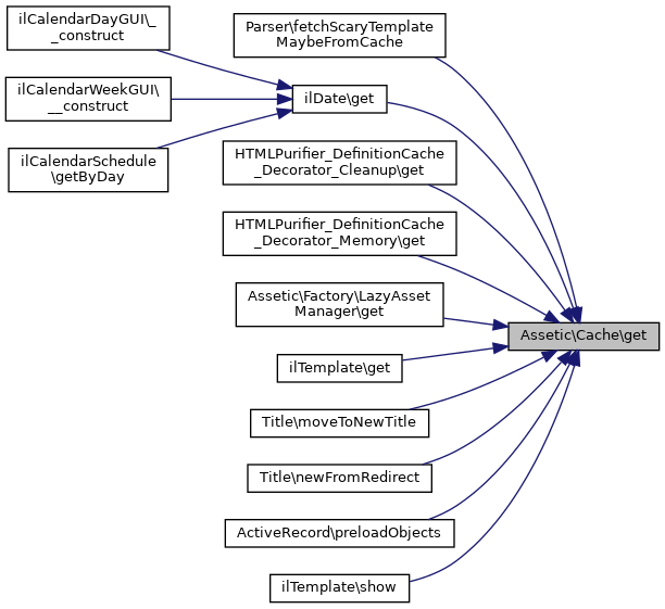 Referenced by Parser\fetchScaryTemplateMaybeFromCache(), ilDate\get(), HTMLPurifier_DefinitionCache_Decorator_Cleanup\get(), HTMLPurifier_DefinitionCache_Decorator_Memory\get(), Assetic\Factory\LazyAssetManager\get(), ilTemplate\get(), Title\moveToNewTitle(), Title\newFromRedirect(), ActiveRecord\preloadObjects(), and ilTemplate\show().