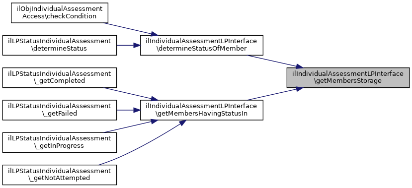 References getMembersStorage(), ilIndividualAssessmentMembers\LP_COMPLETED, ilIndividualAssessmentMembers\LP_FAILED, ilLPStatus\LP_STATUS_IN_PROGRESS_NUM, and ilLPStatus\LP_STATUS_NOT_ATTEMPTED_NUM.