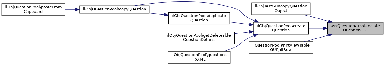 Referenced by assClozeTest\__construct(), assFileUpload\__construct(), assFlashQuestion\__construct(), assFormulaQuestion\__construct(), assLongMenu\__construct(), assNumeric\__construct(), assOrderingHorizontal\__construct(), __construct(), assTextQuestion\__construct(), assTextSubset\__construct(), assImagemapQuestion\__construct(), assJavaApplet\__construct(), assMatchingQuestion\__construct(), assOrderingQuestion\__construct(), assMultipleChoice\__construct(), assSingleChoice\__construct(), assErrorText\__construct(), assKprimChoice\__construct(), _getSuggestedSolutionOutput(), _instantiateQuestion(), assKprimChoice\beforeSyncWithOriginal(), getQuestion(), and setQuestion().