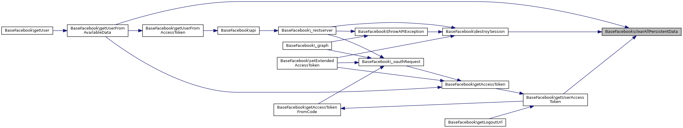 References $default, $user, clearAllPersistentData(), getAccessToken(), getApplicationAccessToken(), getPersistentData(), getSignedRequest(), getUserFromAccessToken(), and setPersistentData().