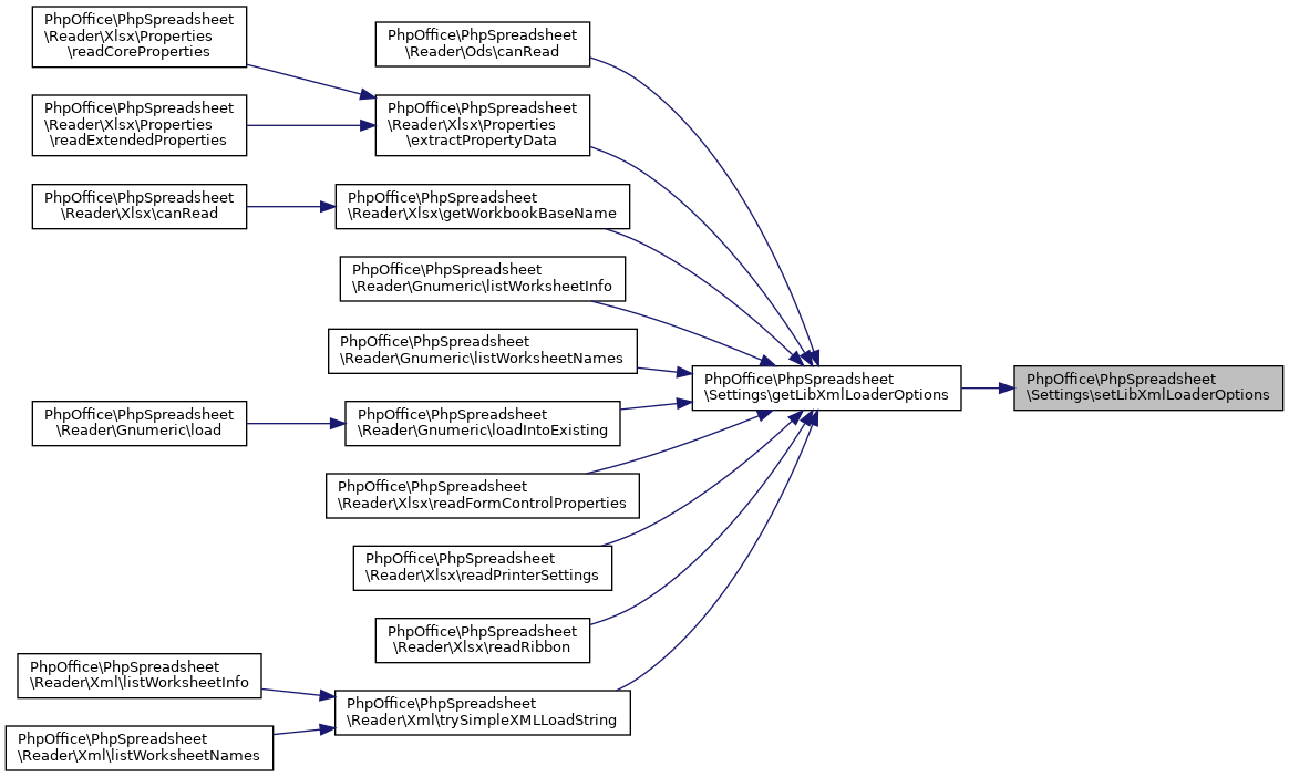 References PhpOffice\PhpSpreadsheet\Settings\$libXmlLoaderOptions, and PhpOffice\PhpSpreadsheet\Settings\setLibXmlLoaderOptions().