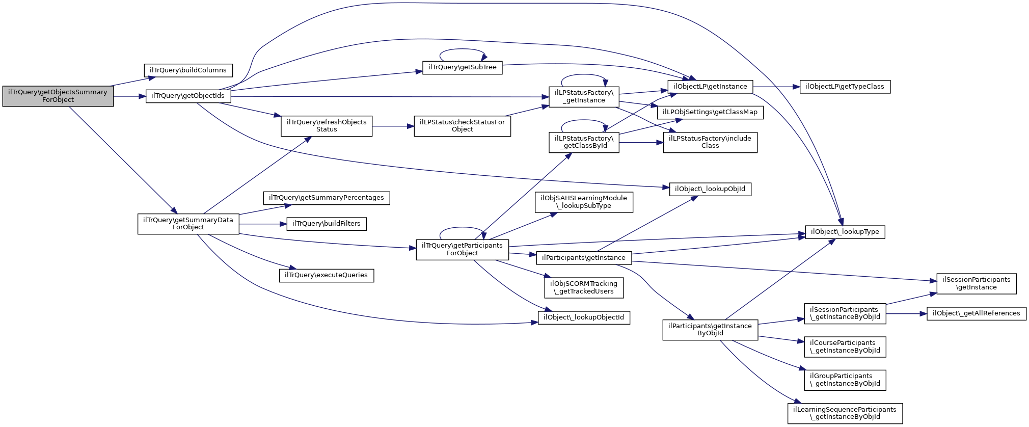References $DIC, $ilDB, $query, $result, $valid, ilObject\_lookupObjectId(), buildFilters(), executeQueries(), getParticipantsForObject(), getSummaryPercentages(), and refreshObjectsStatus().