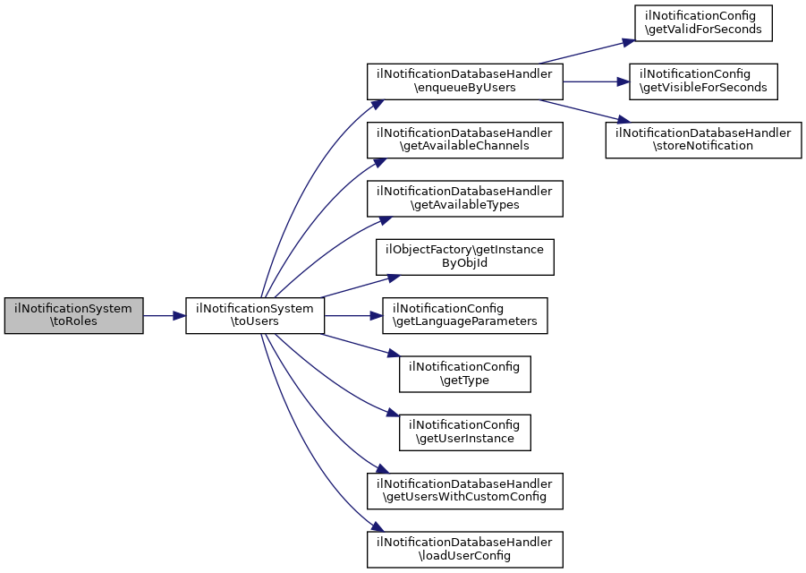 toRoles (ilNotificationConfig $notification, array $roles, $processAsync=false) | |