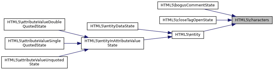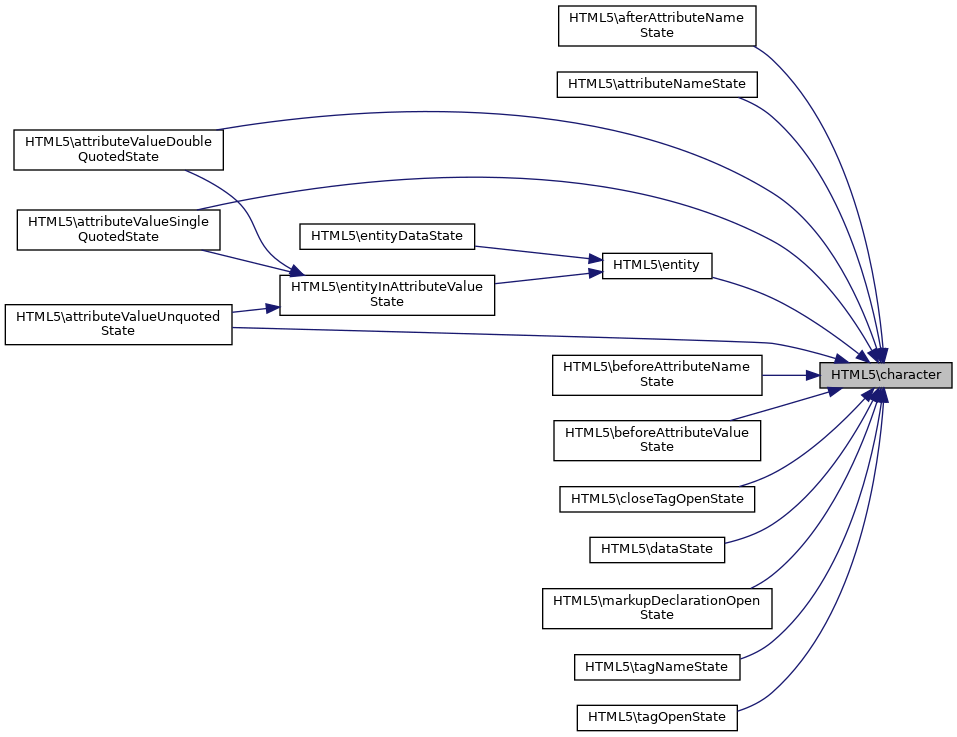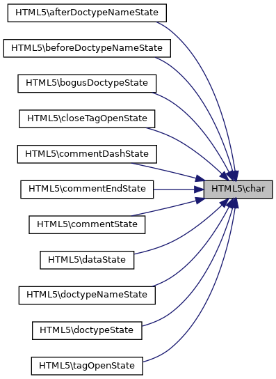 Referenced by __construct(), afterAttributeNameState(), afterDoctypeNameState(), attributeNameState(), attributeValueDoubleQuotedState(), attributeValueSingleQuotedState(), beforeAttributeNameState(), beforeDoctypeNameState(), bogusCommentState(), bogusDoctypeState(), char(), character(), closeTagOpenState(), commentDashState(), commentEndState(), commentState(), dataState(), doctypeNameState(), HTML5TreeConstructer\initPhase(), HTML5TreeConstructer\mainPhase(), HTML5TreeConstructer\rootElementPhase(), tagNameState(), and HTML5TreeConstructer\trailingEndPhase().