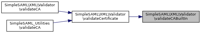 References $certificate, SimpleSAML\Logger\debug(), SimpleSAML\XML\Validator\validateCABuiltIn(), and SimpleSAML\XML\Validator\validateCAExec().