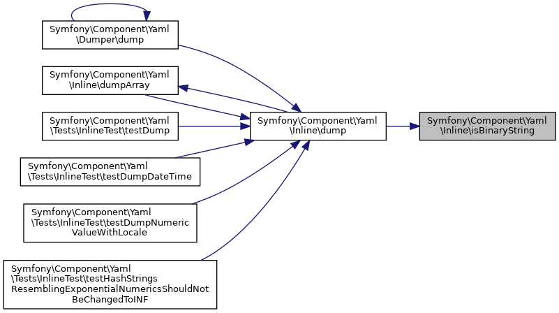Referenced by Symfony\Component\Yaml\Dumper\dump(), Symfony\Component\Yaml\Inline\dumpArray(), Symfony\Component\Yaml\Tests\InlineTest\testDump(), Symfony\Component\Yaml\Tests\InlineTest\testDumpDateTime(), Symfony\Component\Yaml\Tests\InlineTest\testDumpNumericValueWithLocale(), and Symfony\Component\Yaml\Tests\InlineTest\testHashStringsResemblingExponentialNumericsShouldNotBeChangedToINF().