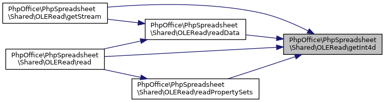 References PhpOffice\PhpSpreadsheet\Shared\OLERead\$data, data, and PhpOffice\PhpSpreadsheet\Shared\OLERead\getInt4d().