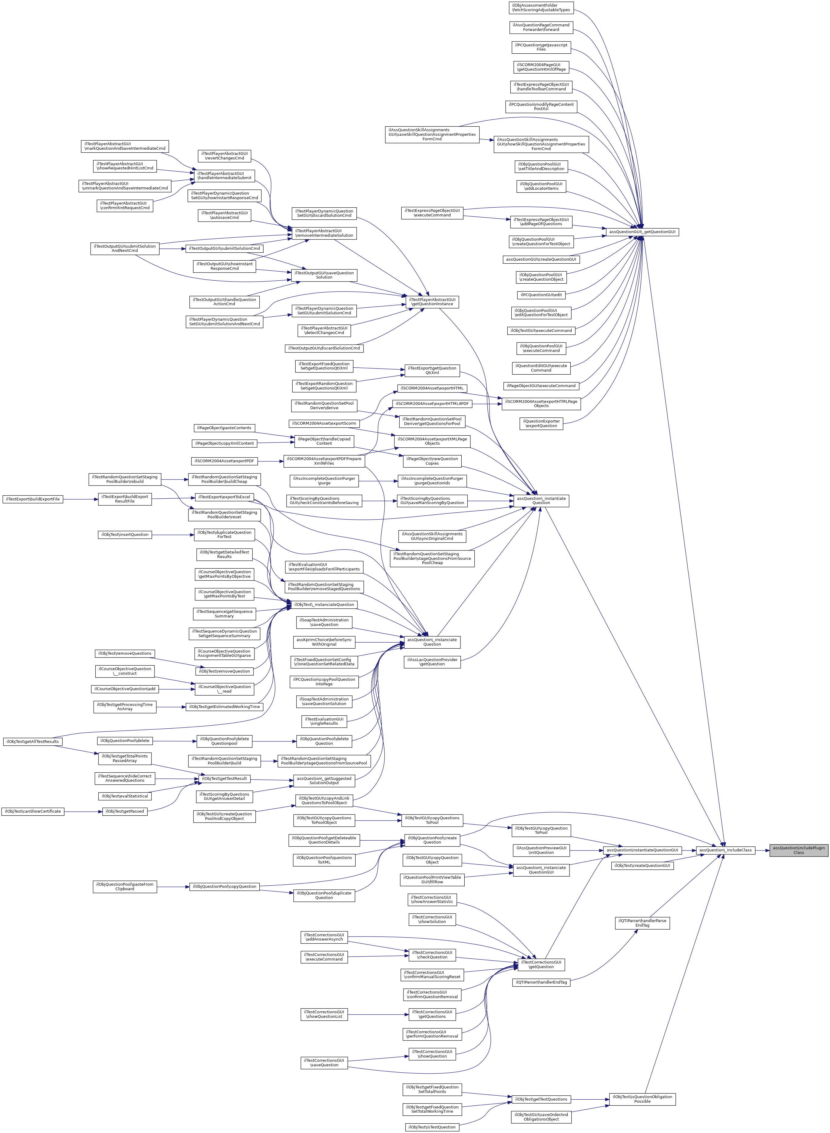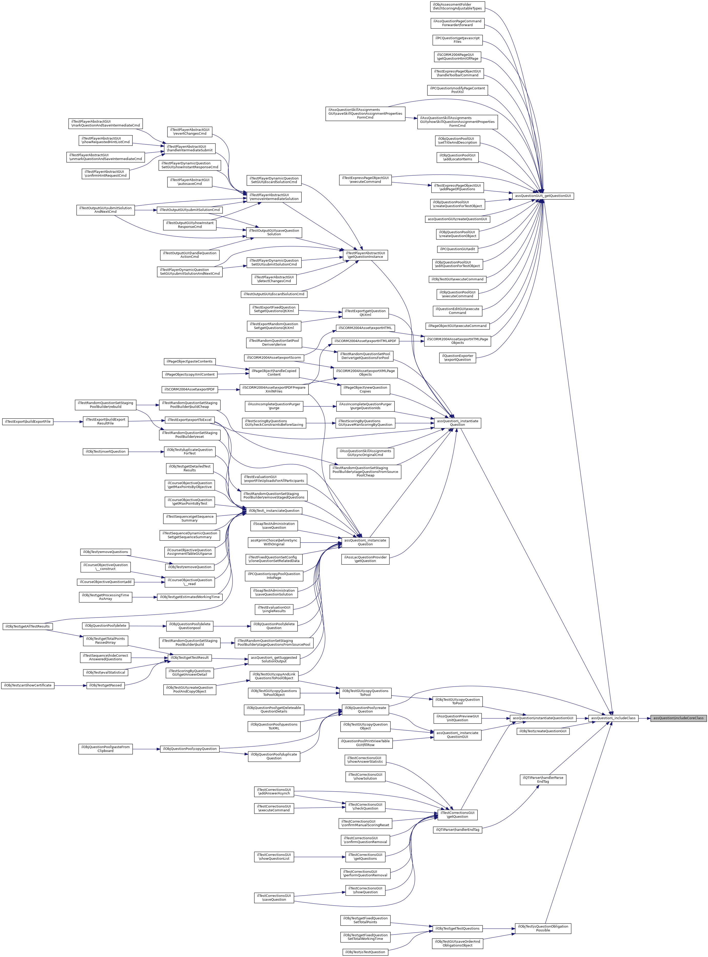 Referenced by assClozeTest\__construct(), assFileUpload\__construct(), assFlashQuestion\__construct(), assFormulaQuestion\__construct(), assLongMenu\__construct(), assNumeric\__construct(), assOrderingHorizontal\__construct(), __construct(), assTextQuestion\__construct(), assTextSubset\__construct(), assImagemapQuestion\__construct(), assJavaApplet\__construct(), assMatchingQuestion\__construct(), assOrderingQuestion\__construct(), assMultipleChoice\__construct(), assSingleChoice\__construct(), assErrorText\__construct(), assKprimChoice\__construct(), _getSuggestedSolutionOutput(), _instantiateQuestion(), assKprimChoice\beforeSyncWithOriginal(), getQuestion(), and setQuestion().