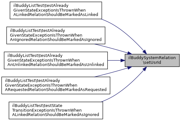 Referenced by ilBuddyListTest\testAlreadyGivenStateExceptionIsThrownWhenALinkedRelationShouldBeMarkedAsLinked(), ilBuddyListTest\testAlreadyGivenStateExceptionIsThrownWhenAnIgnoredRelationShouldBeMarkedAsIgnored(), ilBuddyListTest\testAlreadyGivenStateExceptionIsThrownWhenAnUnlinkedRelationShouldBeMarkedAsUnlinked(), ilBuddyListTest\testAlreadyGivenStateExceptionIsThrownWhenARequestedRelationShouldBeMarkedAsRequested(), and ilBuddyListTest\testStateTransitionExceptionIsThrownWhenALinkedRelationShouldBeMarkedAsIgnored().