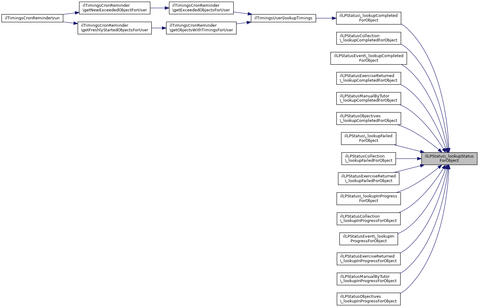Referenced by ilLPObjectStatisticsLPTableGUI\__construct(), ilLearningProgressBaseGUI\__getLegendHTML(), ilLearningProgressBaseGUI\__readStatus(), ilLearningProgressBaseGUI\_getImagePathForStatus(), ilLPStatusCmiXapiAbstract\_getInProgress(), ilLPStatusObjectives\_getStatusInfo(), ilLearningProgressBaseGUI\_getStatusText(), ilLMExplorerGUI\checkLPIcon(), ilLPStatusCollection\determineStatus(), ilLPStatusCollectionManual\determineStatus(), ilLPStatusCollectionMobs\determineStatus(), ilLPStatusCollectionTLT\determineStatus(), ilLPStatusEvent\determineStatus(), ilLPStatusExerciseReturned\determineStatus(), ilLPStatusIndividualAssessment\determineStatus(), ilLPStatusManual\determineStatus(), ilLPStatusManualByTutor\determineStatus(), ilLPStatusObjectives\determineStatus(), ilLPStatusQuestions\determineStatus(), ilLPStatusSCORM\determineStatus(), ilLPStatusSCORMPackage\determineStatus(), ilLPStatusStudyProgramme\determineStatus(), ilLPStatusSurveyFinished\determineStatus(), ilLPStatusTestFinished\determineStatus(), ilLPStatusTestPassed\determineStatus(), ilLPStatusTypicalLearningTime\determineStatus(), ilLPStatusVisitedPages\determineStatus(), ilLPStatusVisits\determineStatus(), ilLPStatusCmiXapiAbstract\determineStatus(), ilLPStatusLtiOutcome\determineStatus(), ilLPStatusTestPassed\determineStatusForScoreLastPassTests(), ilIndividualAssessmentLPInterface\determineStatusOfMember(), ilTrSummaryTableGUI\fillHeaderCSV(), ilTrSummaryTableGUI\fillHeaderExcel(), ilLPObjectStatisticsLPTableGUI\getGraph(), ilLPStatusIcons\getImagePathForStatus(), ilLPStatusCourseReference\getInProgress(), ilTrSummaryTableGUI\getItems(), ilTrMatrixTableGUI\getItems(), ilLOUserResults\getObjectiveStatusForLP(), ilTrQuery\getObjectsDataForUser(), ilSoapSCORMAdministration\getSCORMCompletionStatus(), ilLOUserResults\getSummarizedObjectiveStatusForLP(), ilTrQuery\getUserObjectiveMatrix(), ilObjSCORM2004LearningModule\importSuccess(), ilObjSCORMLearningModule\importSuccess(), ILIAS\MyStaff\ListCourses\ilMStListCoursesTableGUI\initFilter(), ILIAS\MyStaff\Courses\ShowUser\ilMStShowUserCoursesTableGUI\initFilter(), ilLPObjectStatisticsLPTableGUI\initFilter(), ilTrObjectUsersPropsTableGUI\initFilter(), ilTrSummaryTableGUI\initFilter(), ilDashboardLearningSequenceGUI\isRelevantLso(), ilLPStatusCmiXapiAbstract\loadStatusInfo(), ilLPStatusIcons\lookupNumStatus(), ilLPStatusCourseReference\readStatusInfo(), ilLearningProgressGUI\showtlt(), ilStudyProgrammeLPTest\testInitialLPActive(), ilStudyProgrammeLPTest\testInitialLPDraft(), ilStudyProgrammeLPTest\testInitialProgressOutdated(), ilStudyProgrammeLPTest\testMarkAccredited(), ilStudyProgrammeLPTest\testMarkFailed(), ilStudyProgrammeLPTest\testMarkNotFailed(), ilStudyProgrammeLPTest\testMarkNotRelevant(), ilLPStatusIconsTest\testSomeExamplesForImagePathsByStatus(), and ilStudyProgrammeLPTest\testUnmarkAccredited().