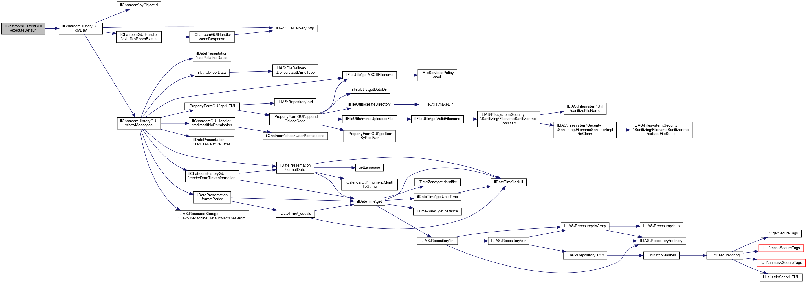 Here is the call graph for this function:| ilChatroomHistoryGUI::executeDefault | ( | string | $requestedMethod | ) |