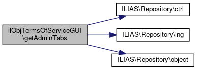 Here is the caller graph for this function:| ilObjTermsOfServiceGUI::getAdminTabs | ( | ) |
